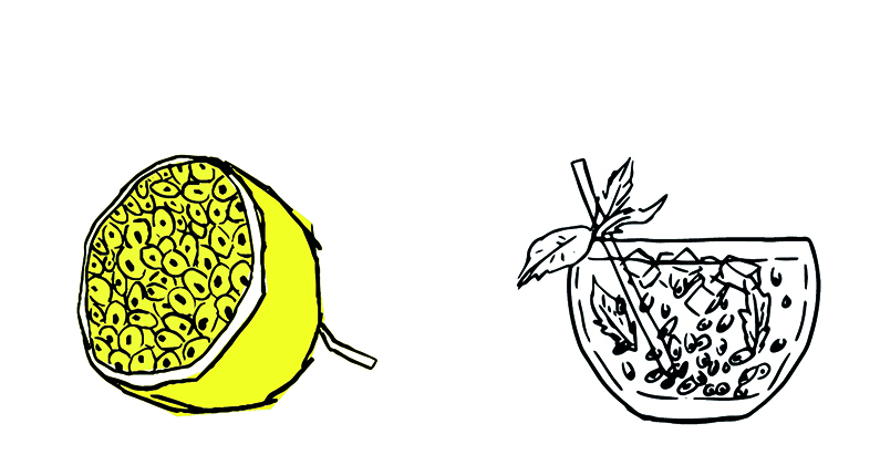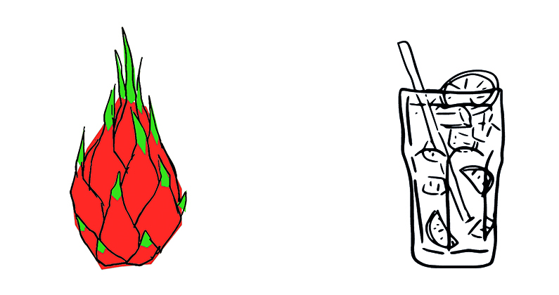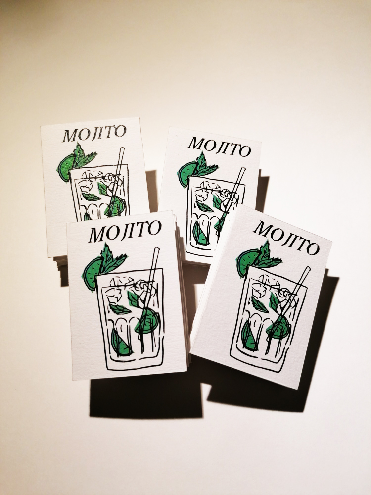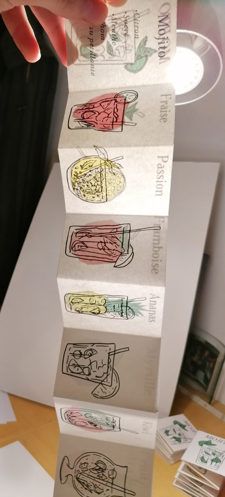 Je me suis vite décidé à faire un petit dépliant format poche qui illustre les différents types de Mojito fruit possible.