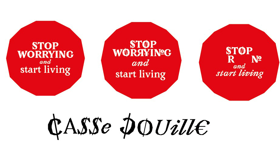 Ses formes très carrées me faisaient penser à un panneau de signalisation donc je voulais mettre en avant la typographie sur un stickers qui représentait un panneau de stop.