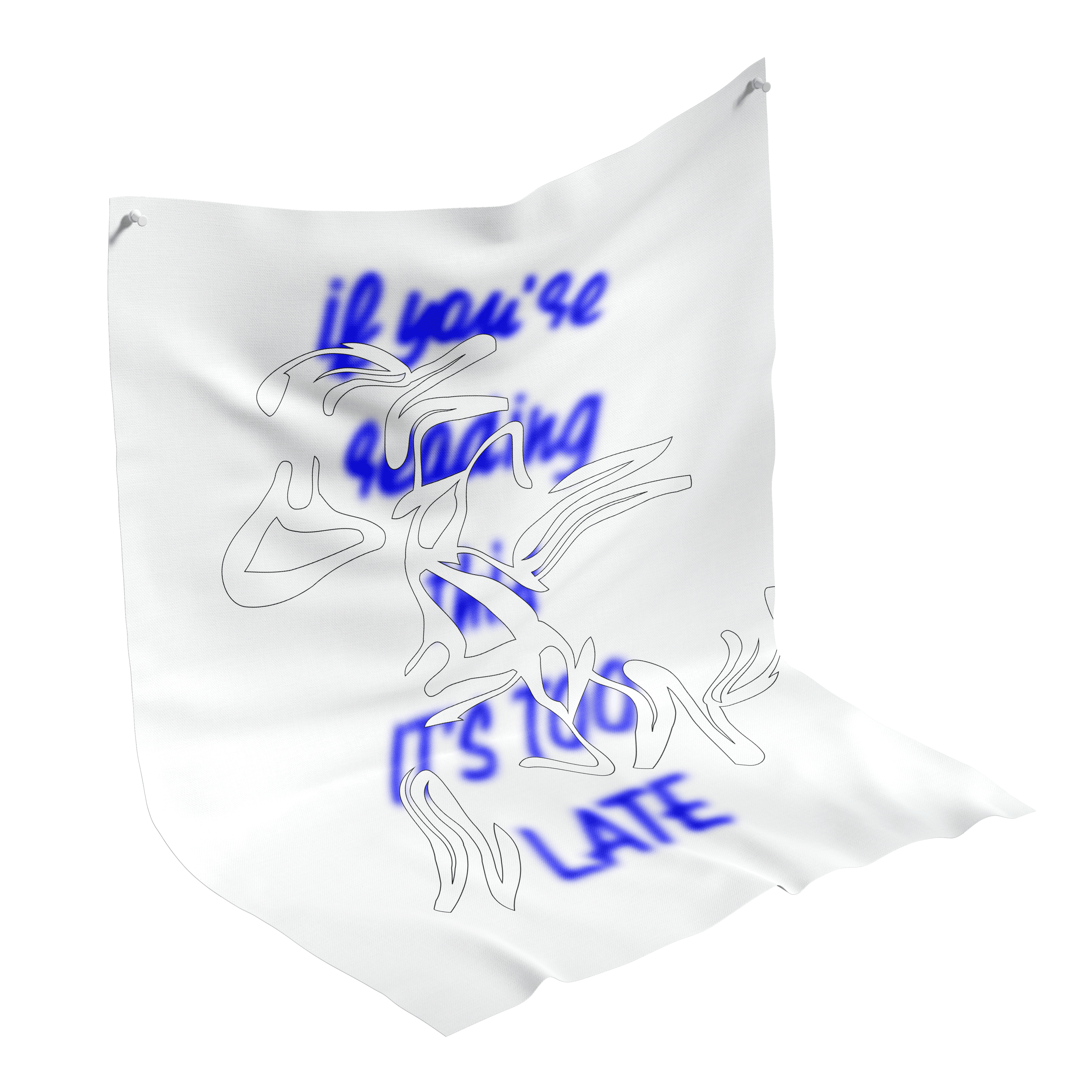 Pour réaliser cette affiche, je me suis inspirée du nom d'un album de rap, "If you can read that, it's too late" de l'artiste canadien Drake. C'est pourquoi le texte en arriere plan est legèrement flouté et le texte au premeir plan se déforme.