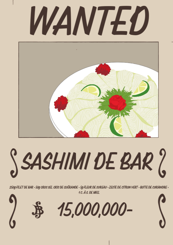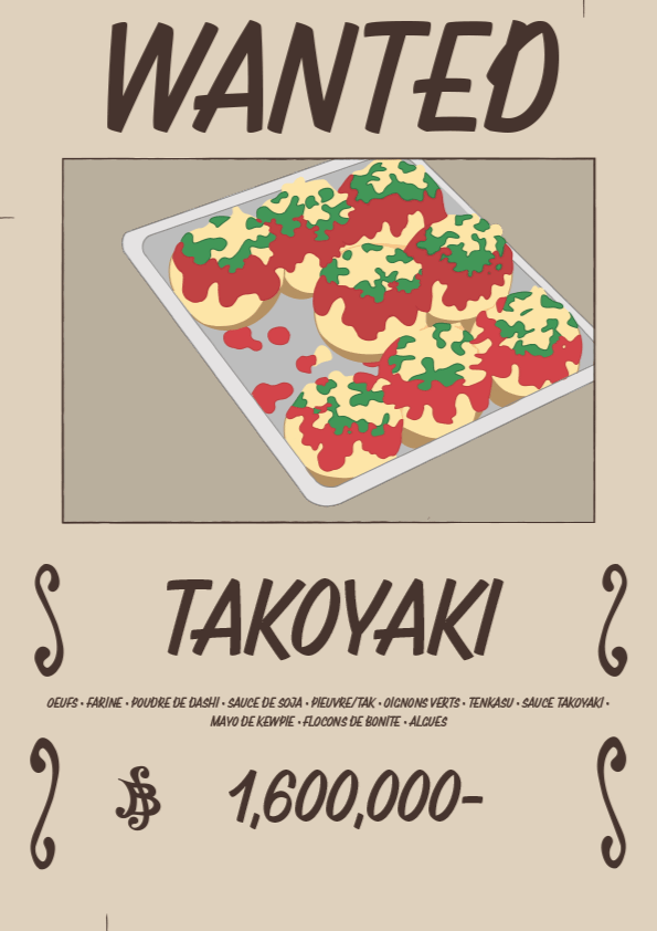 Étant une tres grande fan de l'anime japonais "One Piece", j'ai récréé des affiches d'avis de recherches de pirates avec prime. On voit généralement ces affiches placardées sur les murs des villes de la série japonaise.
