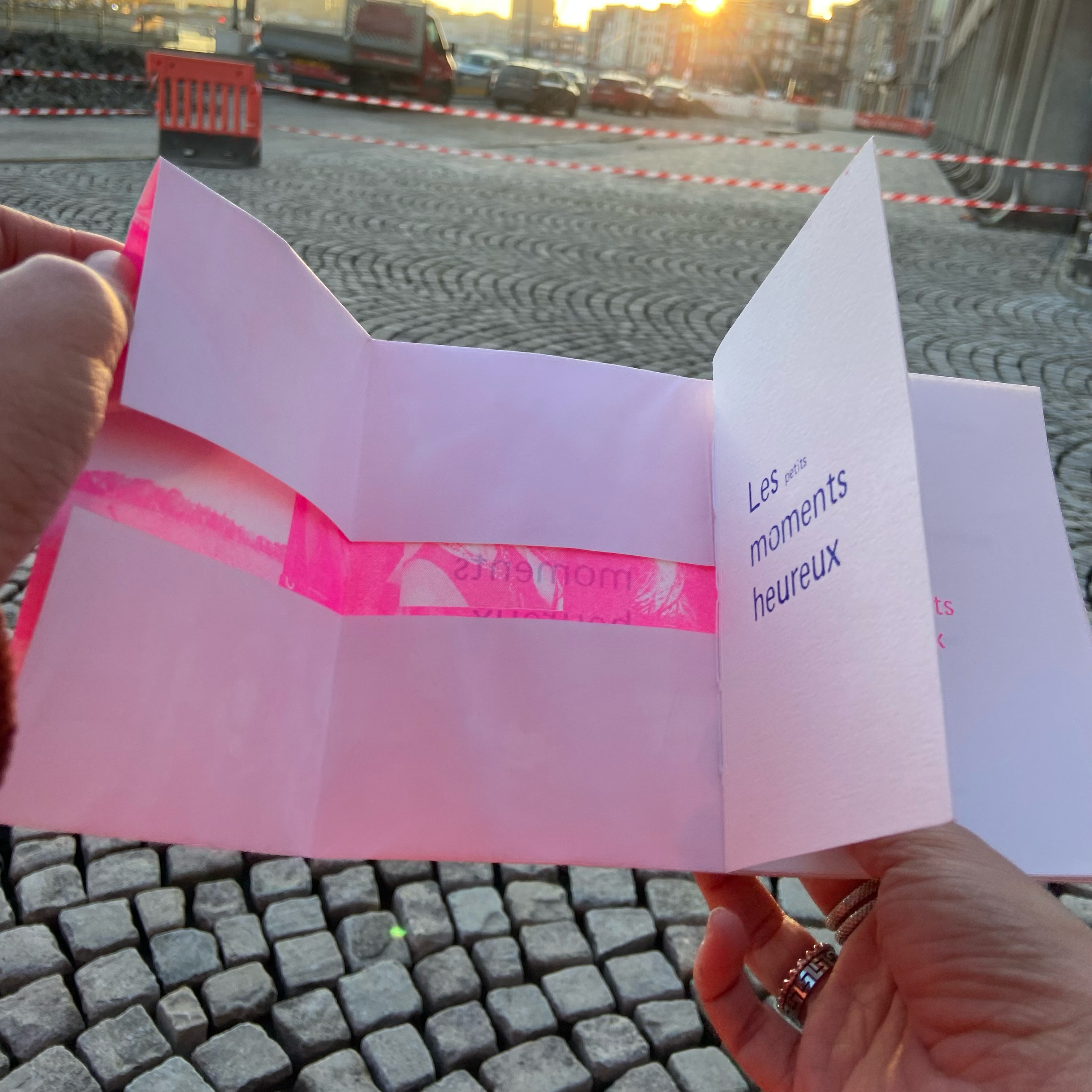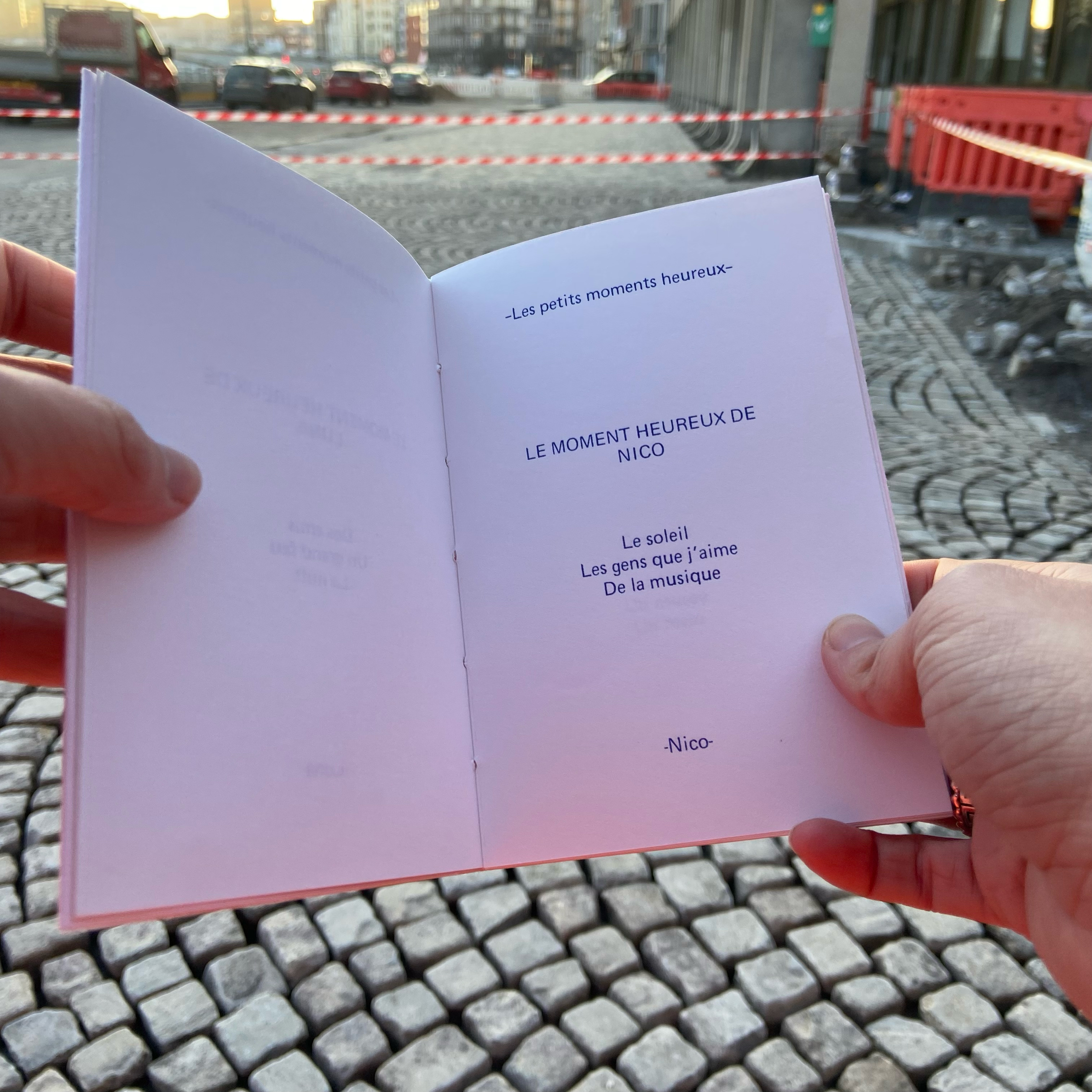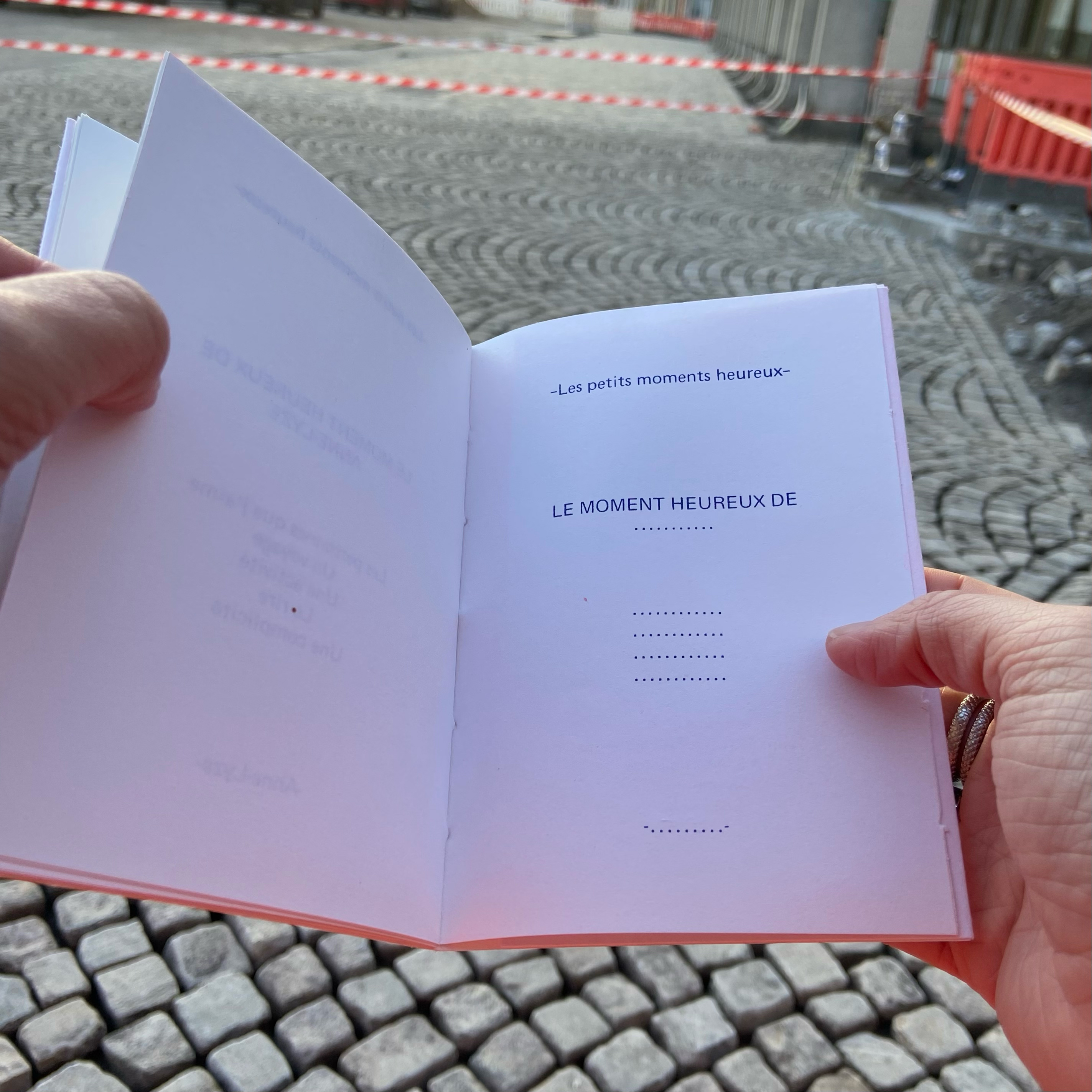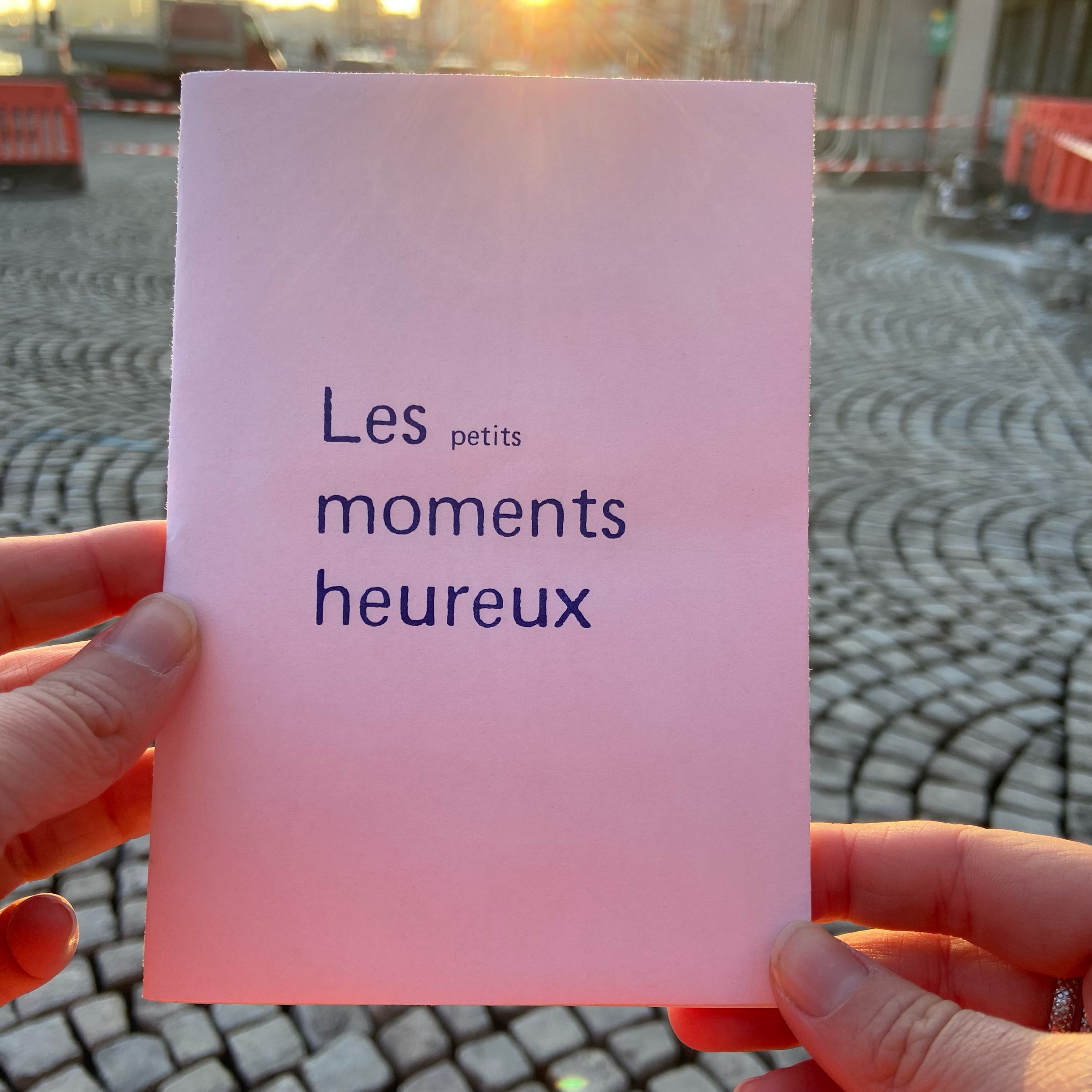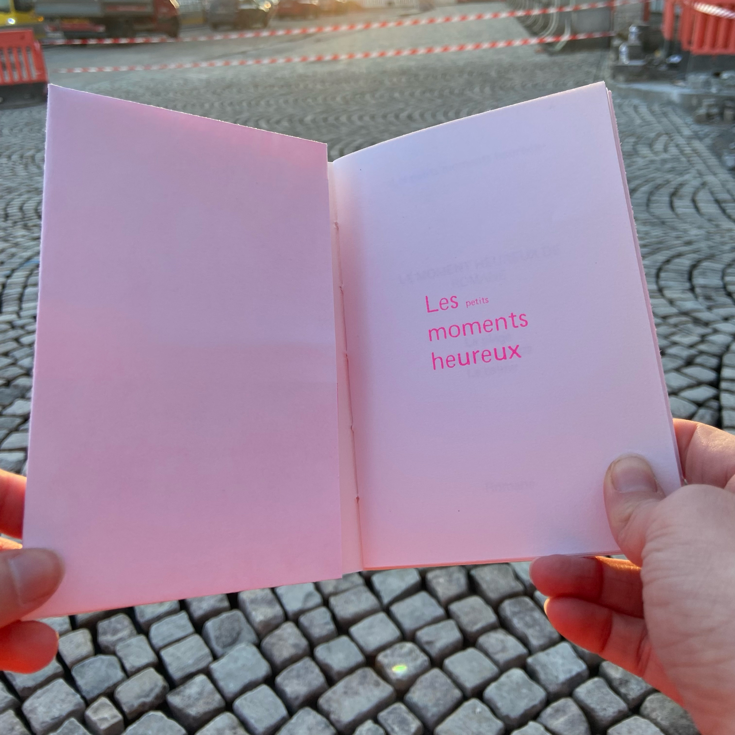 Petite édition, livre de recettes sur les petits moments heureux. Quels ingrédients faut-il pour un petit moment heureux ? Cette fois, j'ai utilisé le corps light de la typographie pour la rendre plus douce, plus délicate. J'ai mis les "titres" de chaque page en capital pour avoir une hierarchie. Imprimé en risographie et relier à la main.