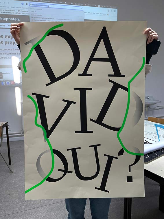 Le second travail a été la réalisation d'une affiche A0. Ma police ayant été inventée pour un musée, je voulais y faire référence au sein de mon affiche.
