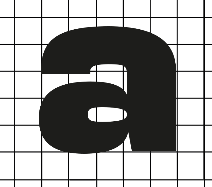 La moitié des lignes et colonnes de cette grille 10x10 reçoit les tiges et les traits de cette police tandis que l'autre moitié est là pour recevoir les espaces blancs à l'intérieur des lettres et entre elles, rendant le rythme millimétrique tout à fait unique, totalement réglé, comme un code barre.