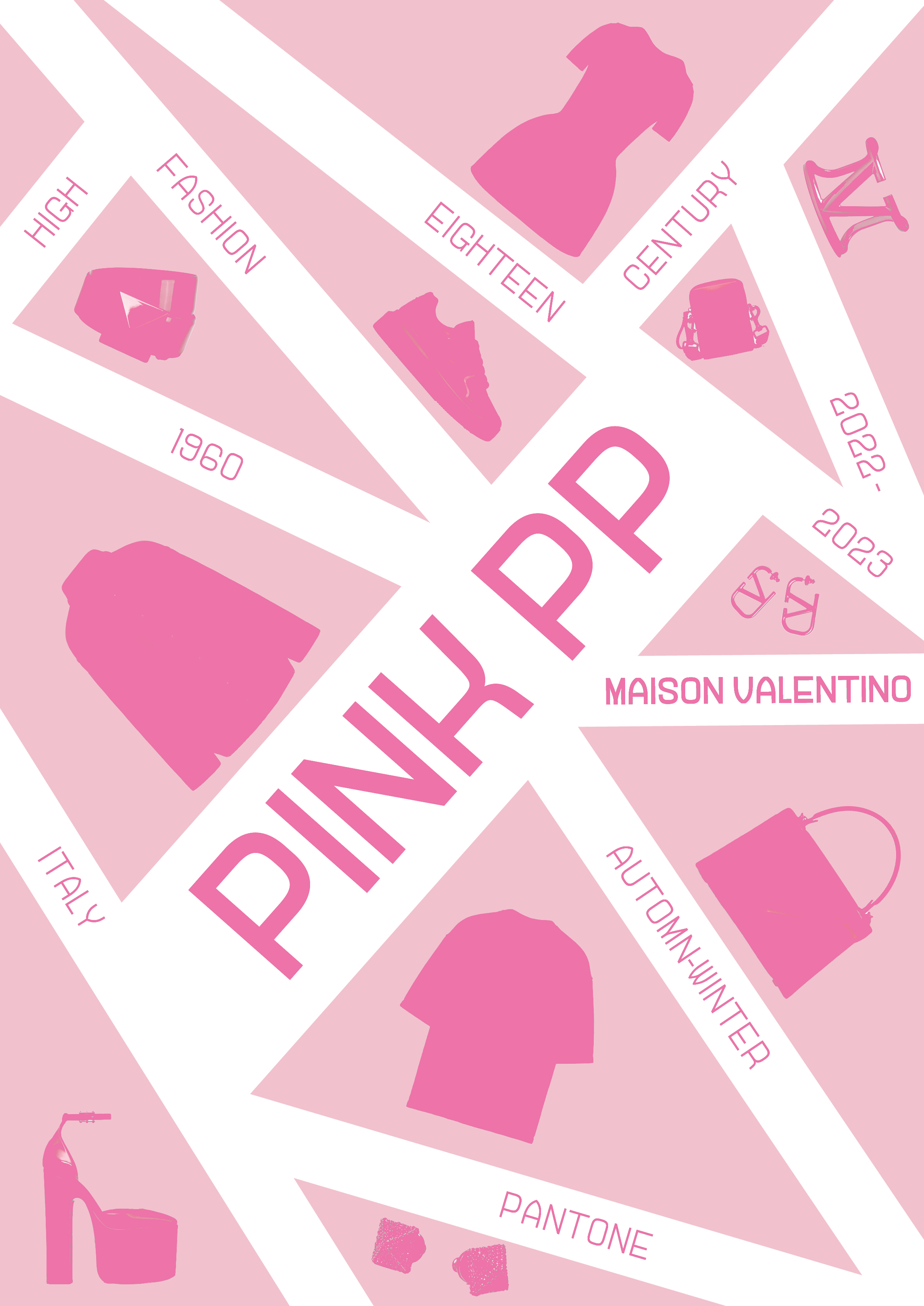 Ce travail avail pour buts de créer une affiche et que celle-ci ne soit pas spécialement une affiche évènementielle et de la réaliser à l'aide des différentes formes de la typographies millimètre. J'ai décidé de faire une affiche sur la FASHION-WEEK de Paris mais qui ne concerne que le défilé Valentino de leur collection PINK PP. Je suis partie du mot PINK PP puis j'ai cherché des mots, une date et des vêtements de cette collection pour les intégrer à l'affiche afin de représenter la collection. Le fond est rose pour respecter l'univers ton sur ton de cette collection. Pour amener de la clareté et faire resortir les mots, j'ai ajouté des lignes blanches qui ont formé des triangles.Forme qui est très présente dans cette collection notament a travers des formes de clous.