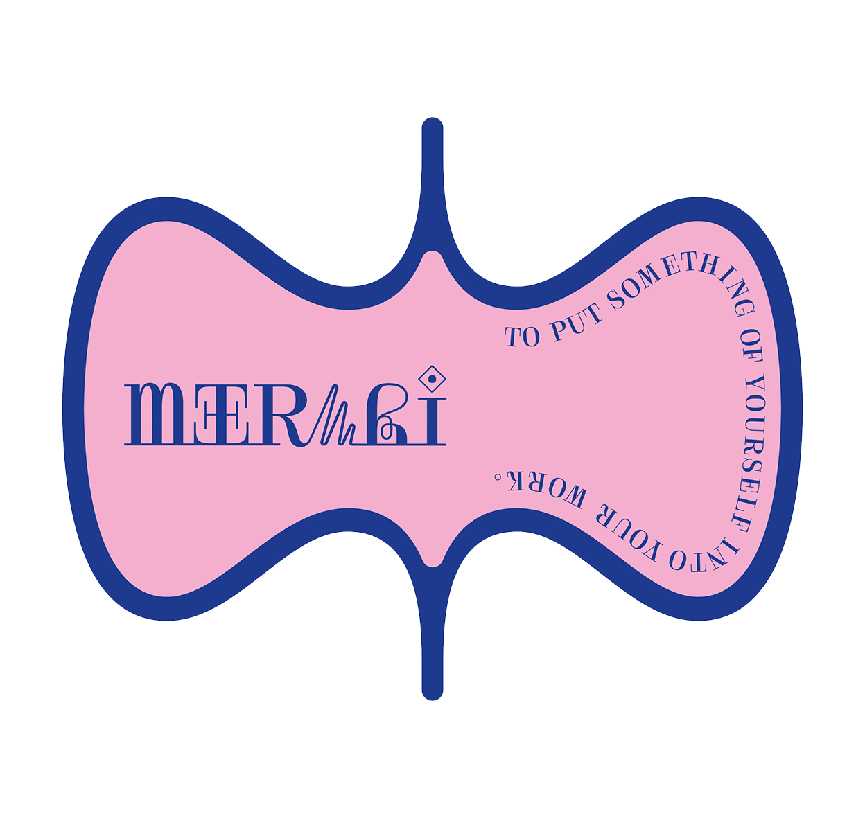 Mon autocollant est composé de deux parenthèses tournées à 90 degrés qui ont été assemblées. Pour assembler le mot « Meraki », j'ai utilisé des glyphes spéciaux, comme on peut le voir aux lettres E, A et i. En outre, je voulais que tout se fonde l'un dans l'autre pour donner au mot une légèreté et un petit quelque chose en plus.