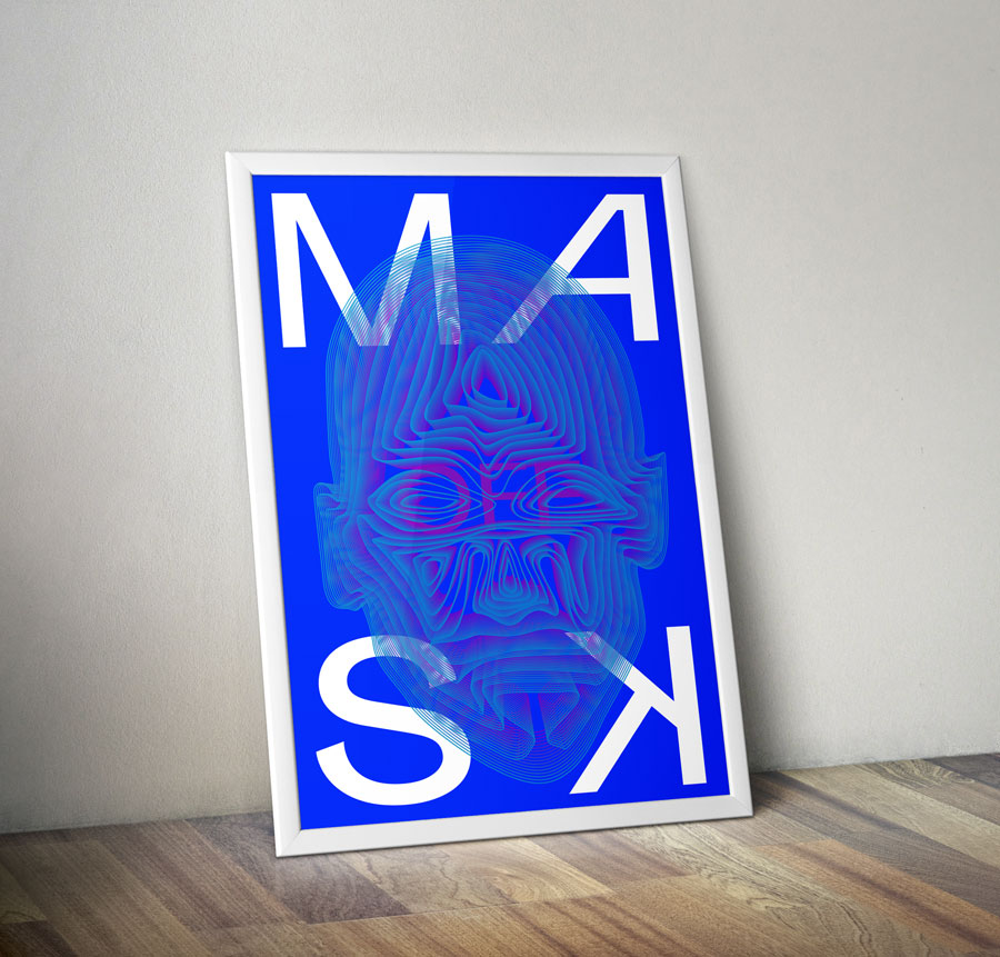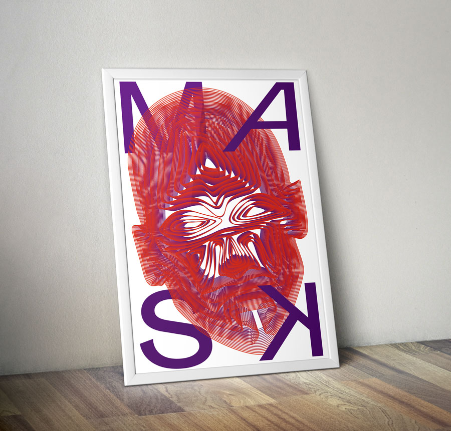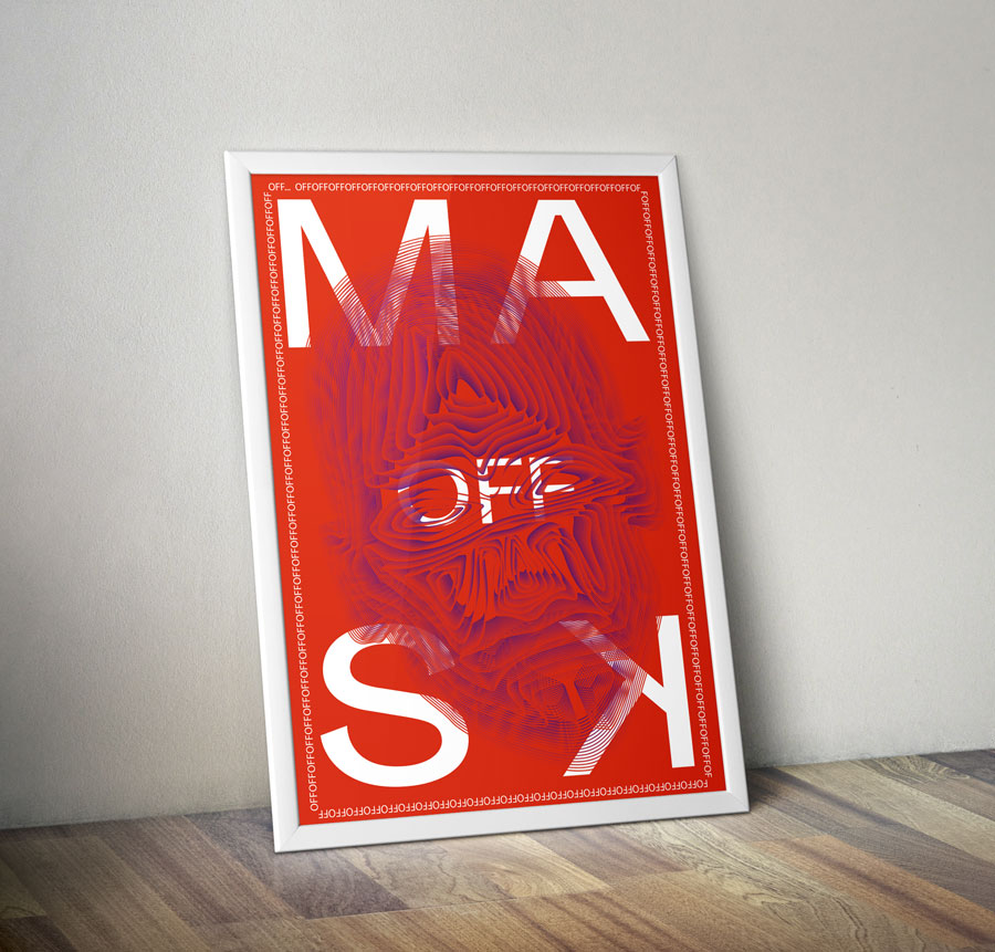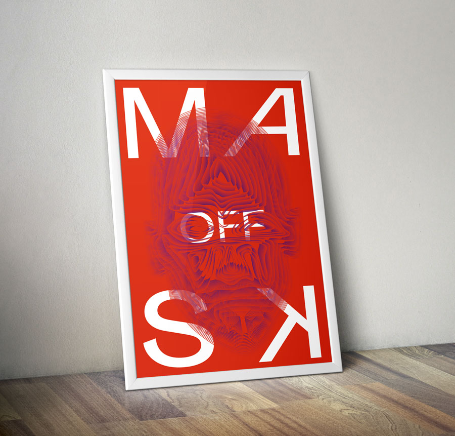 Pour mon deuxième projet, il était question de réalisation d'affiches typographiques. L'histoire est simple. J'écoutais le son de l'artiste FUTURE nommé : Mask Off. J'ai détouré à l'outil plume le visage de l'artiste plusieurs fois.
